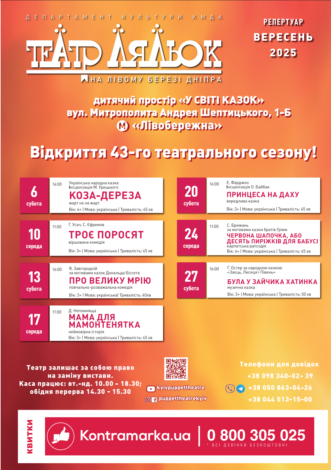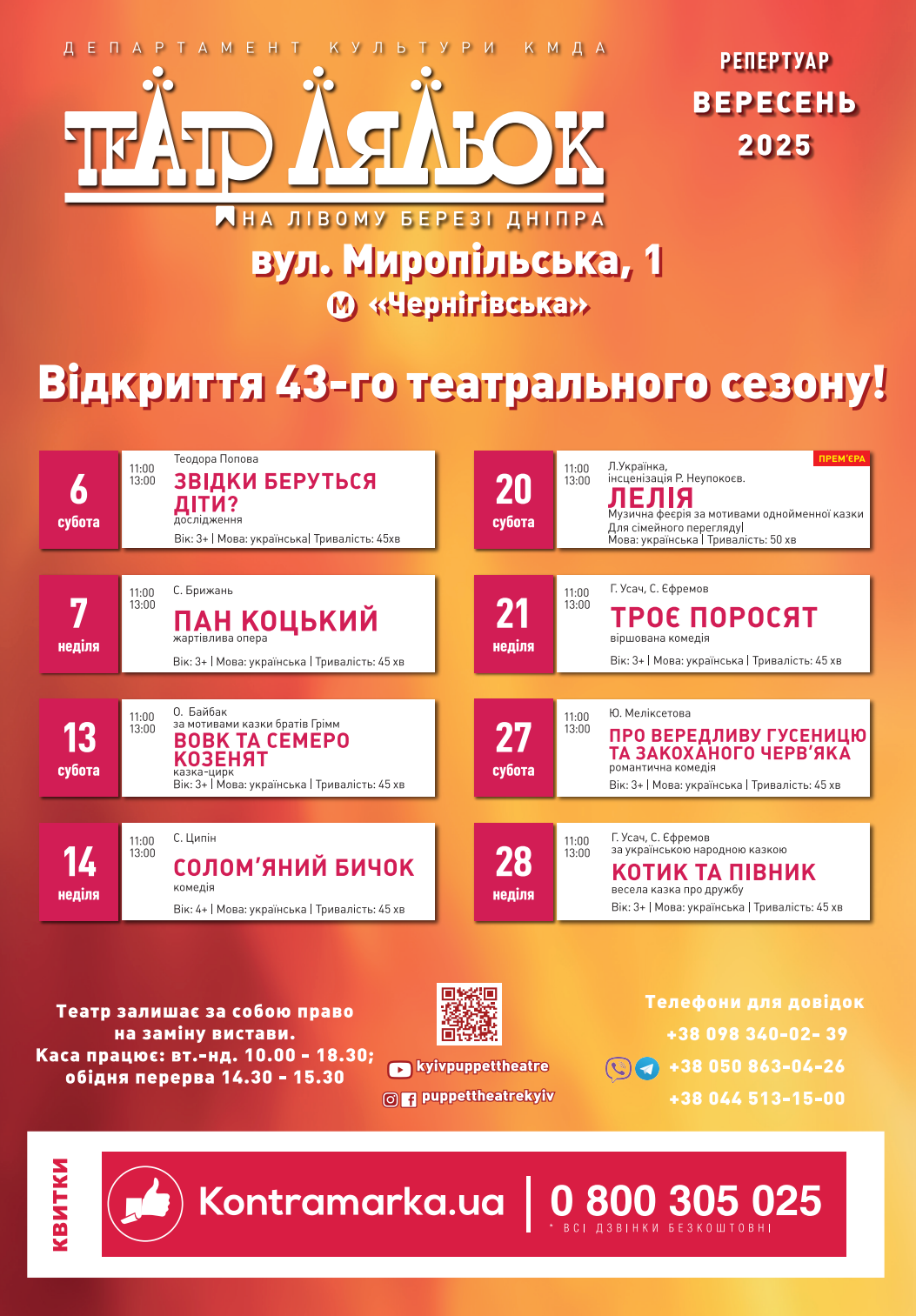 РЕПЕРТУАР НА ВЕРЕСЕНЬ 2019