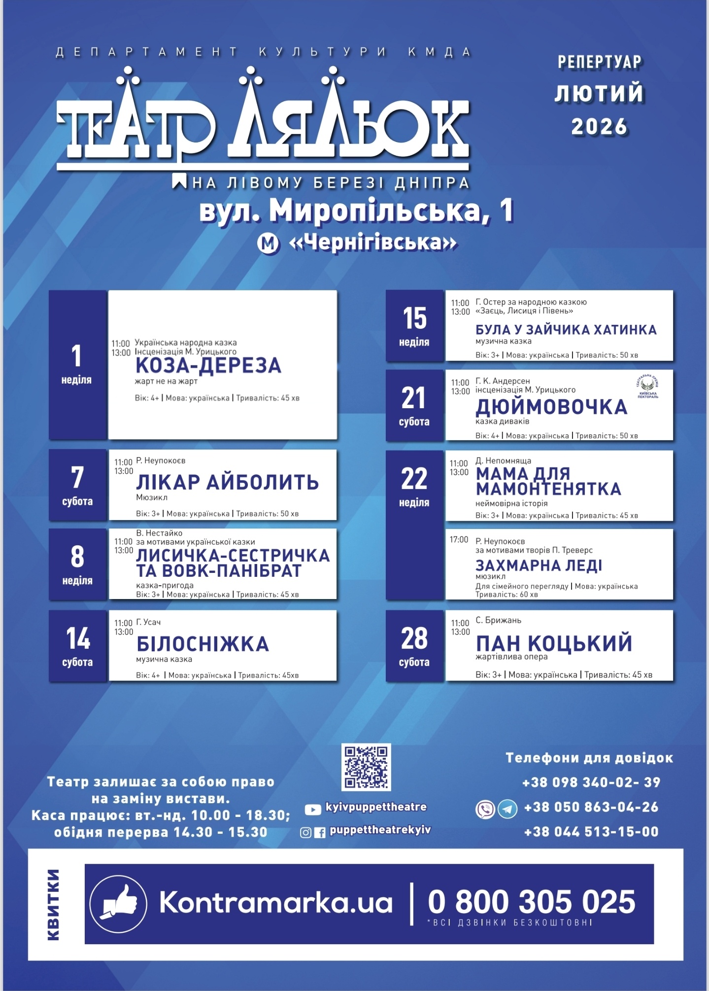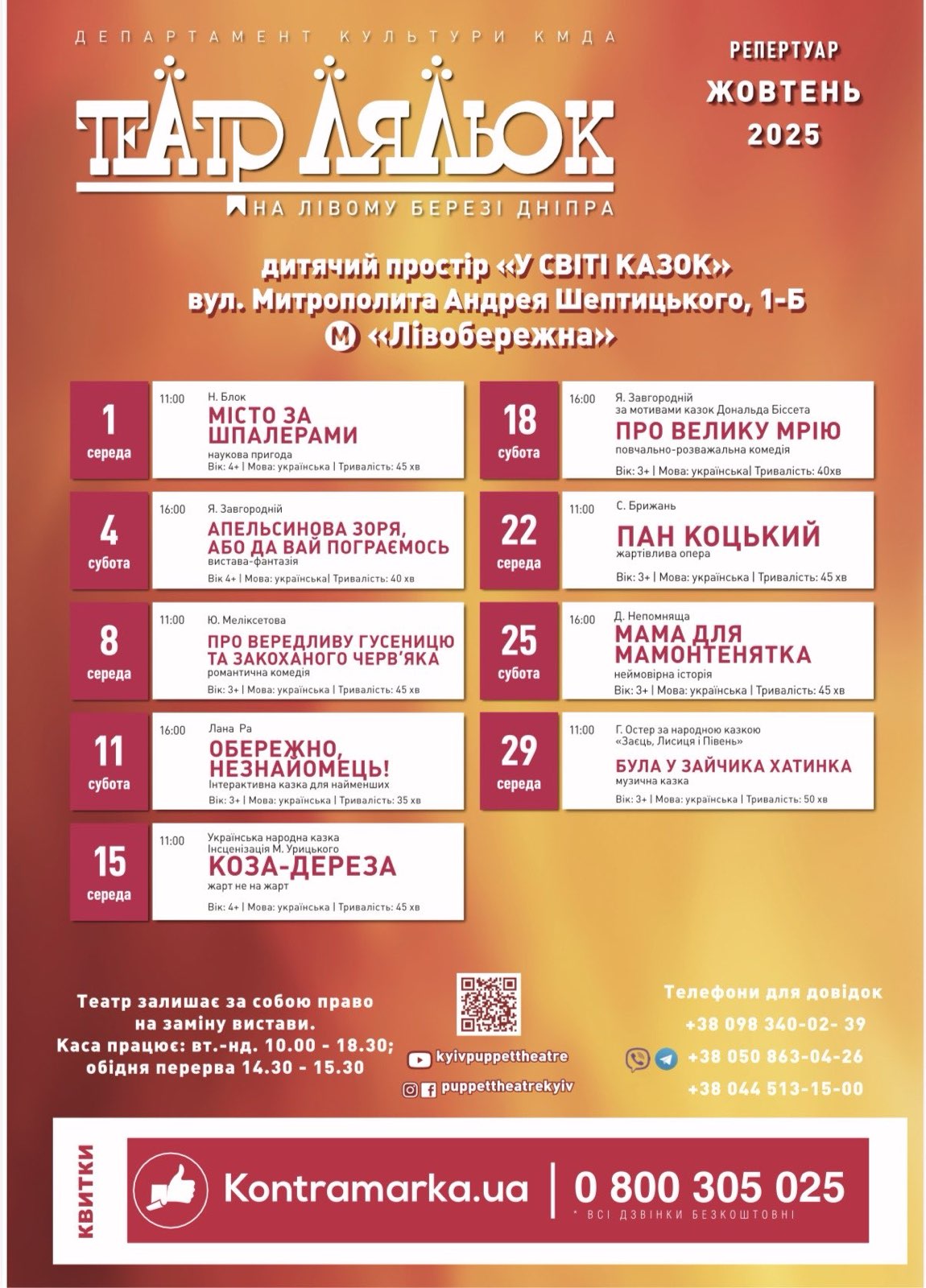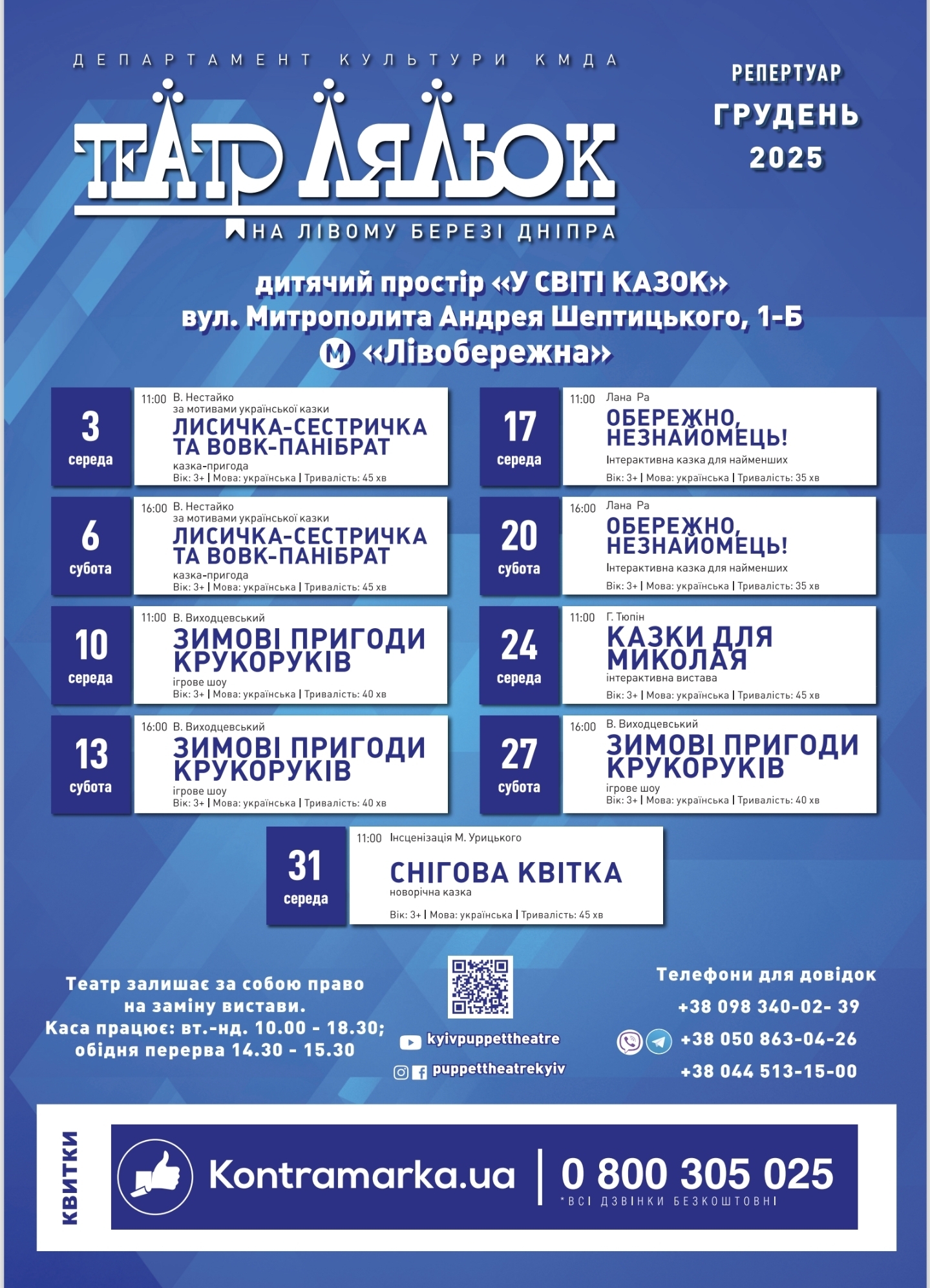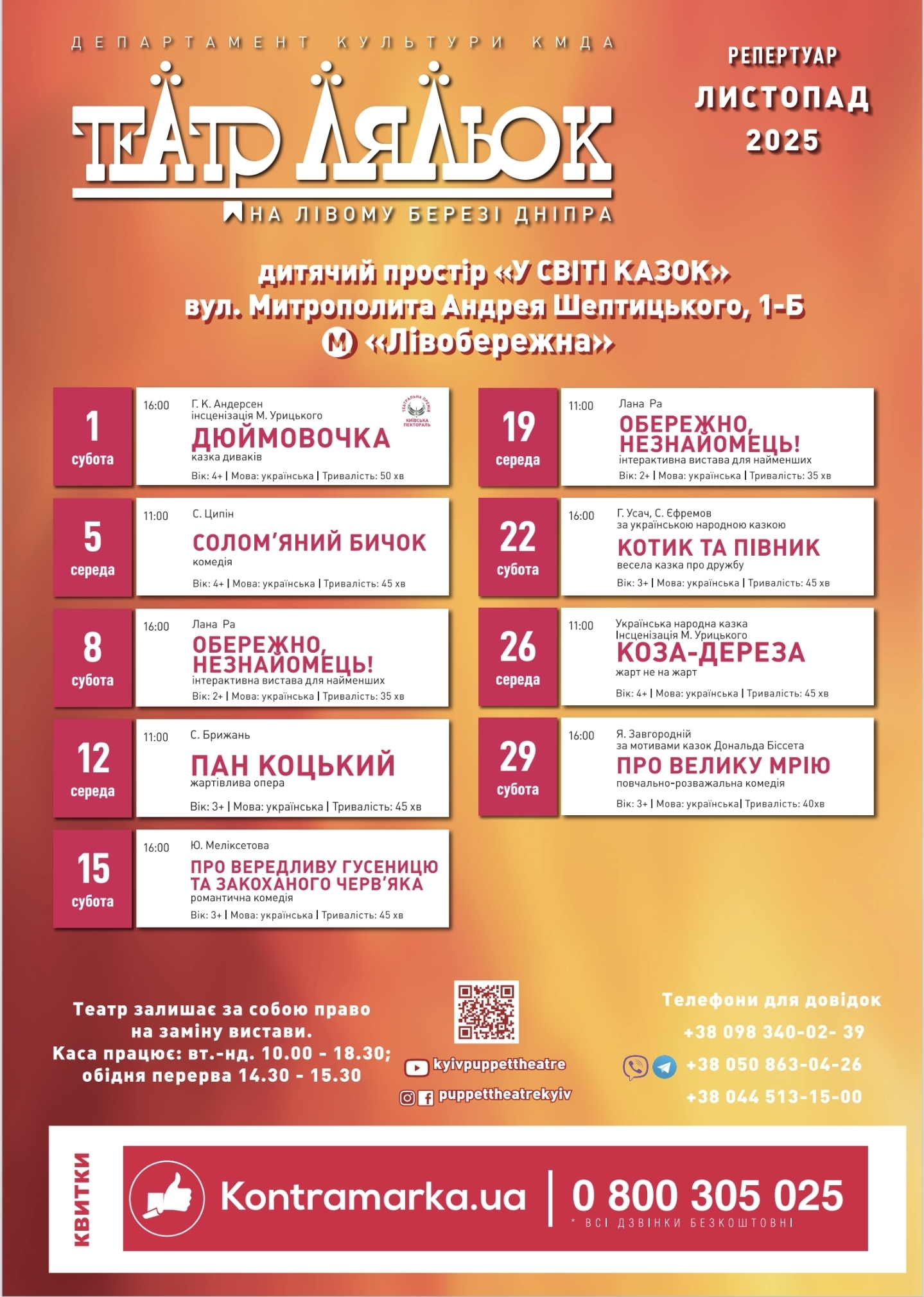 Афішу вистав Дитячого простору «У світі казок» дивіться нижче