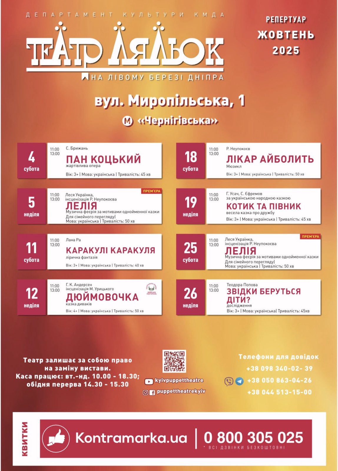 РЕПЕРТУАР НА ЖОВТЕНЬ 2019