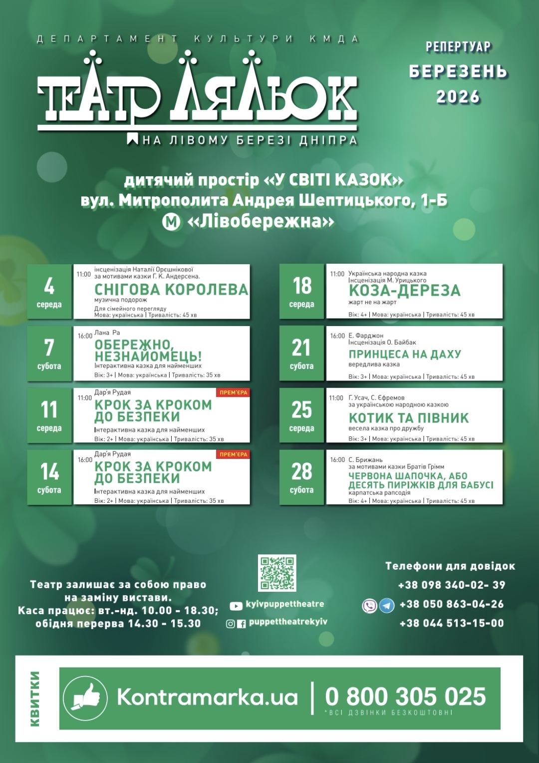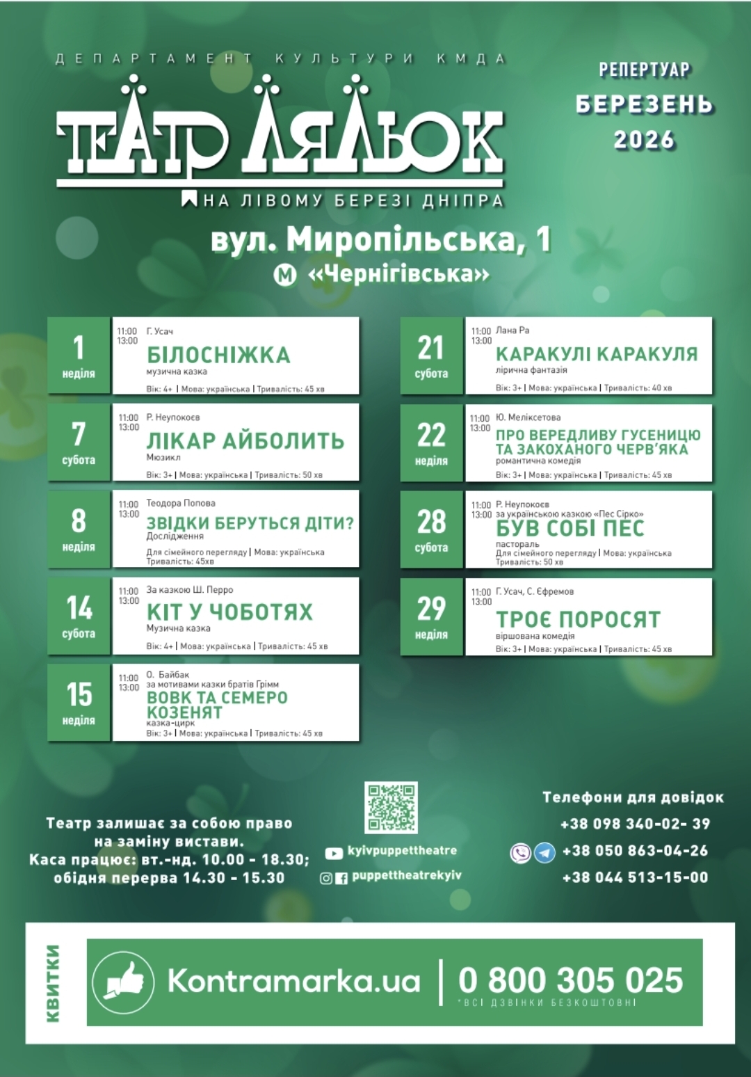 Бронювання — за телефоном, вказаним на афіші